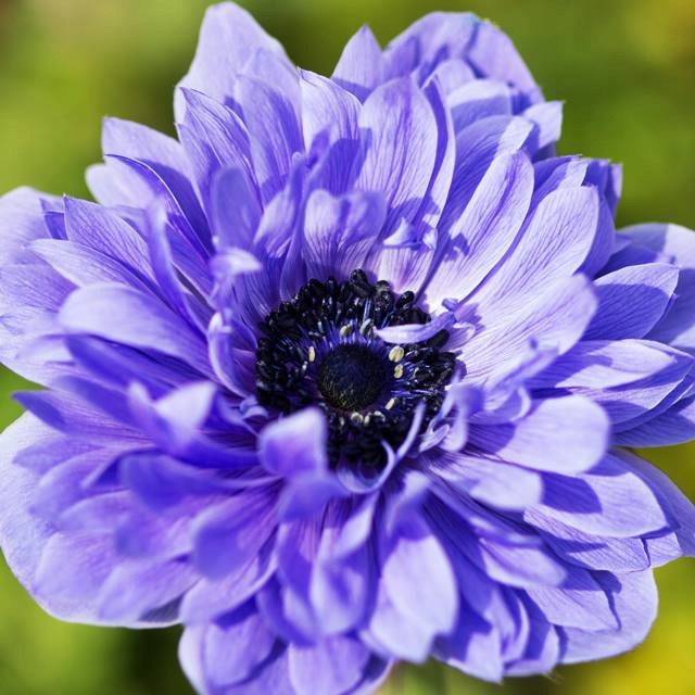 Луковицы анемоны махровой Лорд Лейтенант (Lord Lieutenant) – эффектный цветок с необычными сине-фиолетовыми лепестками на фоне изумрудной листвы. Прямые стебли держат очаровательные густые соцветия. Второе название – ветреница. При густой посадке цветущее растение напоминает синее облако. Длительность цветения до 2-х недель.