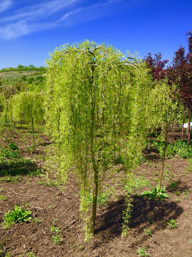 Саженцы караганы древовидной Уолкер (Walker) создадут причудливую ажурную плакучую крону, применение которой не только украсит любую композицию, но и будет удачным в одиночных высадках. Высота взрослого деревца зависит от штамба, диаметр до 2-2,5 метров. Обильно цветёт в мае-июне жёлтыми цветами. При созревании стручки лопаются с отчётливым треском, разбрасывая цилиндрообразные семена. Хорошо растёт на любых почвах, но предпочитает супеси в солнечных местах. Возможно приобретение и высадка крупномера караганы древовидной Уолкер.
