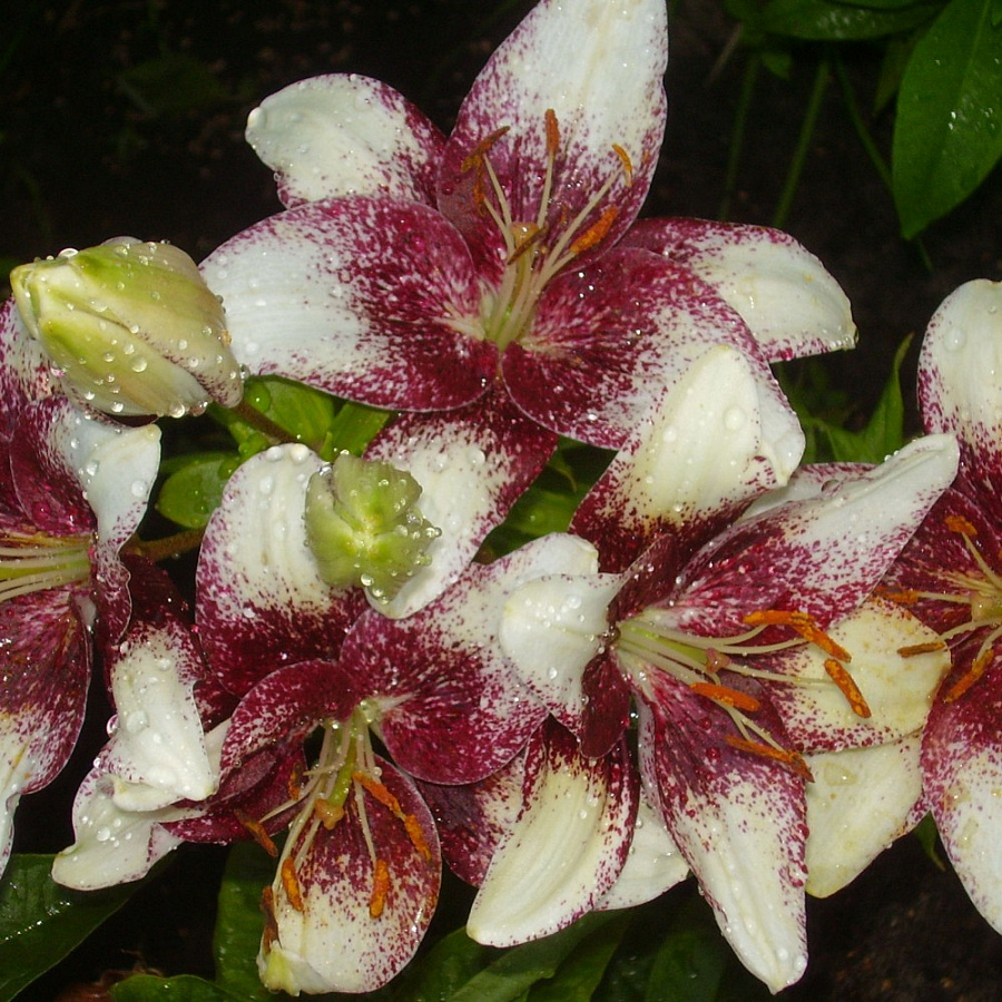 Окраска цветка : кремовый с темно-бордовым крапом