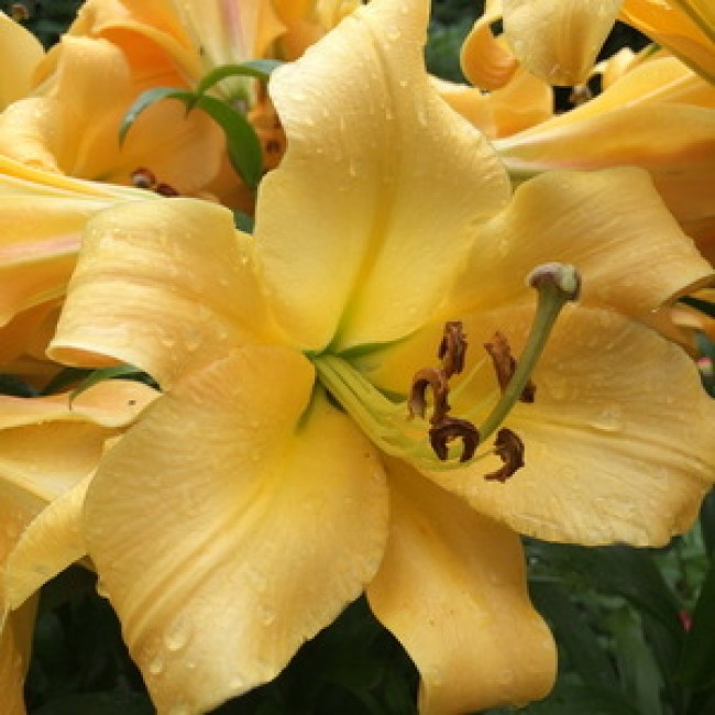 • Окраска цветка : абрикосо-желтый с коричневыми пыльниками