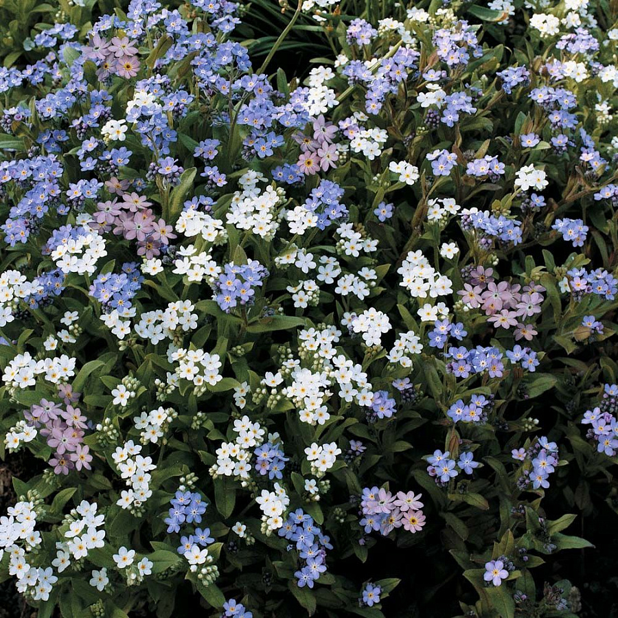 Семена незабудки (смесь) станут достойным вариантом для наполнения цветников, балконных ящиков и подвесных горшков. Посадите смесь и выращивайте нежные цветочки белого, розового и голубого оттенков. Высота взрослых кустов не превышает 30 см. При плотной посадке растения образуют плотный ковер, закрывающий землю.