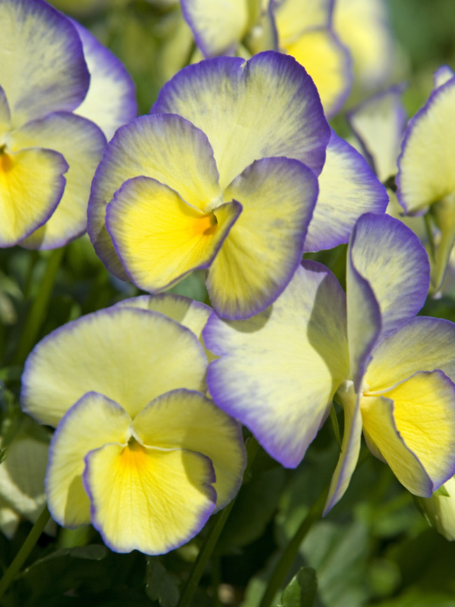 Рассада виолы (фиалки) рогатой Etain высаживать рекомендуется в умеренно влажную, рыхлую почву, на солнечные участки. Многолетник морозостойкий, не требует ухода. Формирует компактные кустики из прикорневых листочков. В высоту достигает до 25 сантиметров, а в ширину – до 30-35 сантиметров. Главная особенность сорта – уникальная окраска. Цветочки виолы рогатой Etain окрашены в светло-желтый цвет и обрамлены фиолетовой каемкой без четких границ. Особенно эффектно многолетник смотрится большими группами.